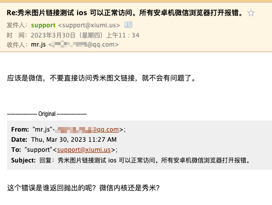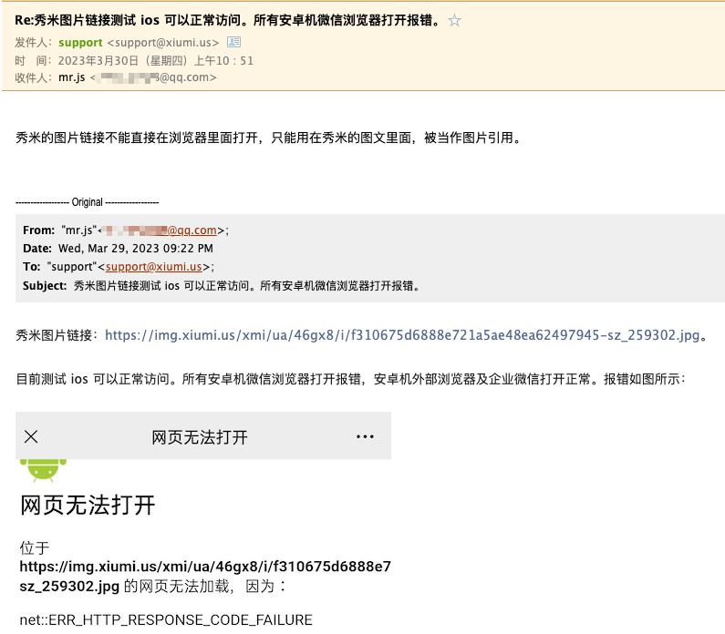 目前测试 ios 可以正常访问。所有安卓机微信浏览器打开报错,安卓机外部浏览器及企业微信打开正常。报错如图所示: