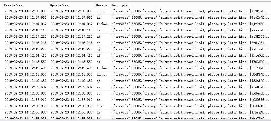 {"errcode":85085,"errmsg":"submit audit reach limit, please try later hint: [Xo3E.a03211090]"}
