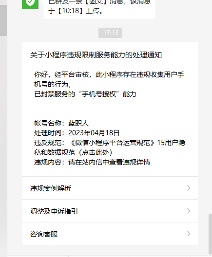 小程序审核时没有问题,但没使用期间为何提示“小程序涉嫌违规收集用户手机号”?应该怎么处理?