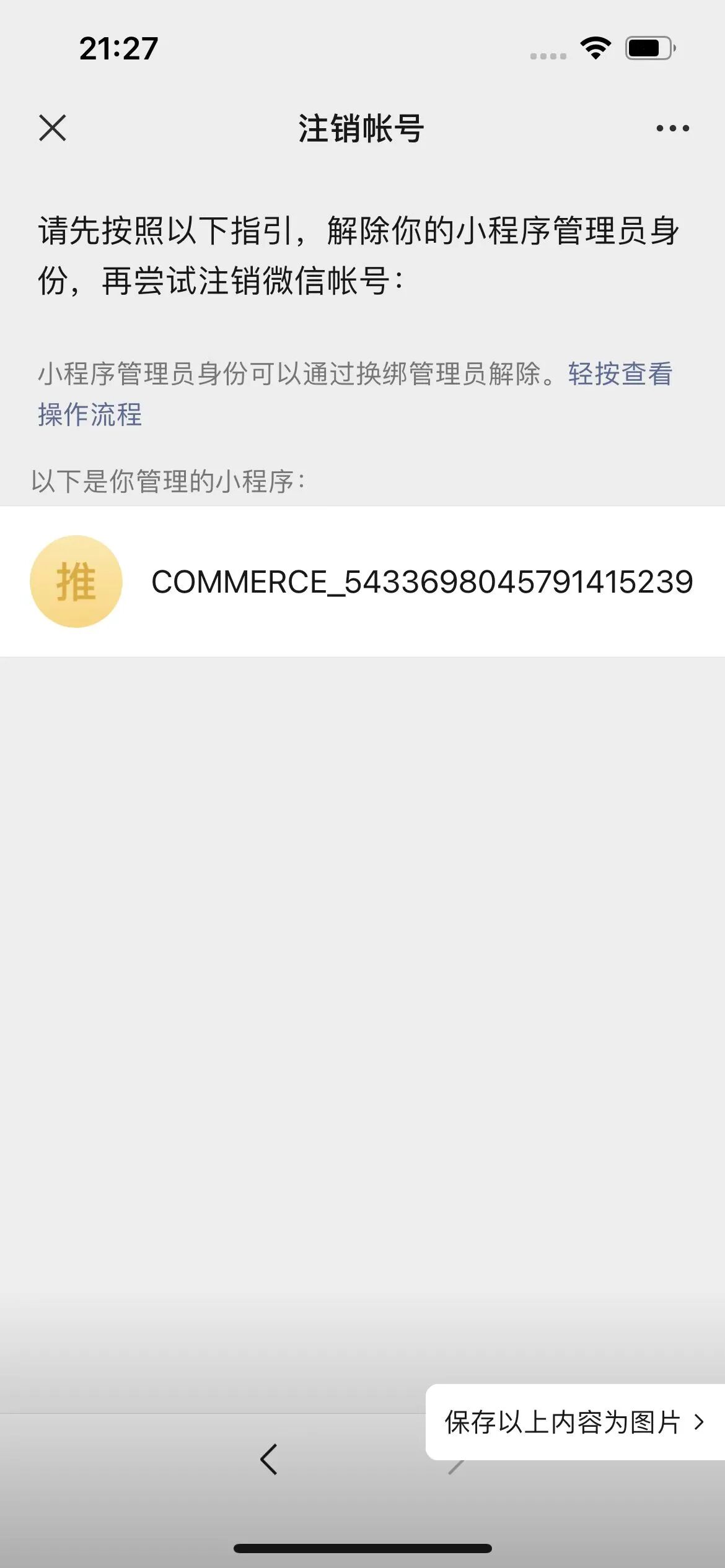 你截图上的是小程序推客,注销解绑参考上面帖子发邮件申请。