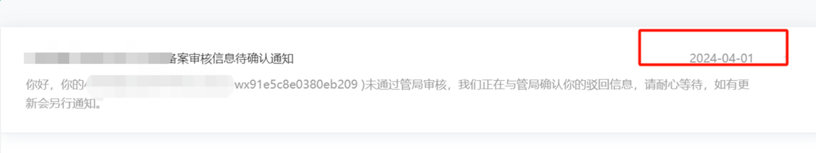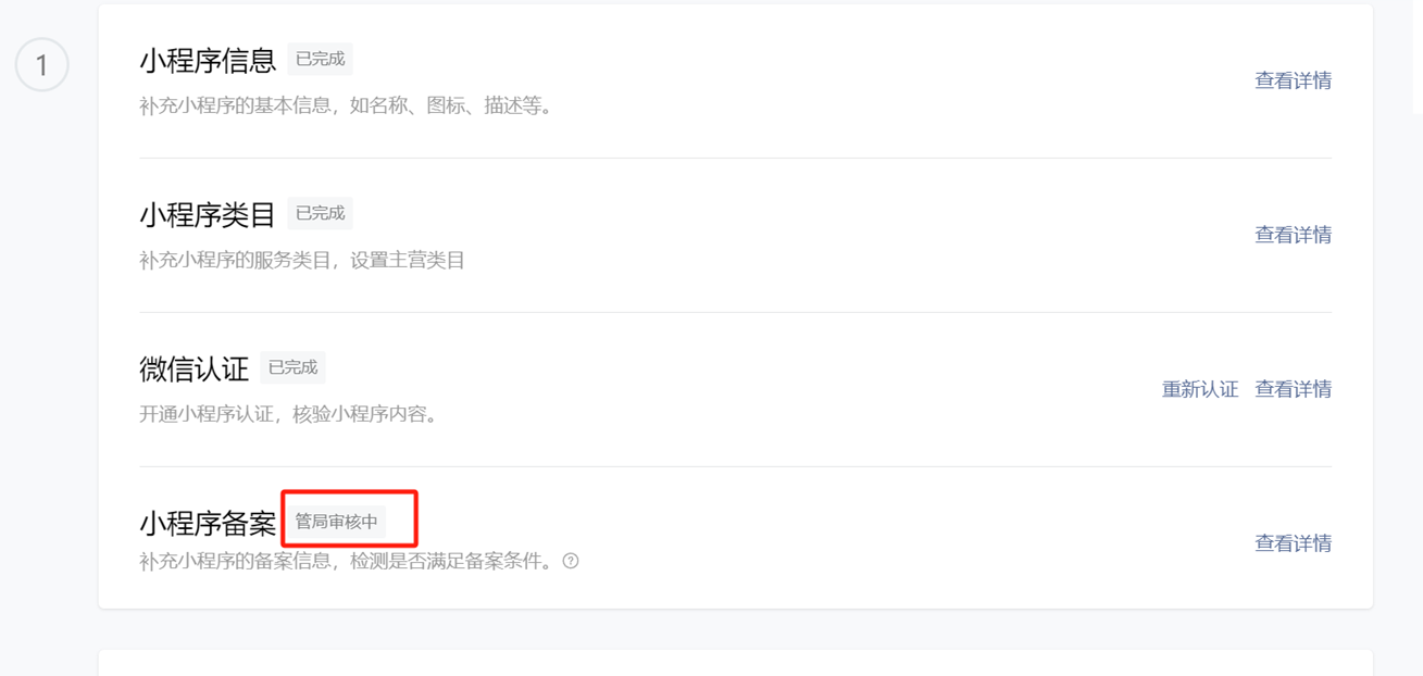 你好,目前该小程序备案进度提示为驳回待完善,可至【mp后台-首页/设置-小程序备案-查看驳回原因】查看,建议参考小程序备案驳回原因中的修改建议完成备案信息修改后,重新提交小程序备案。