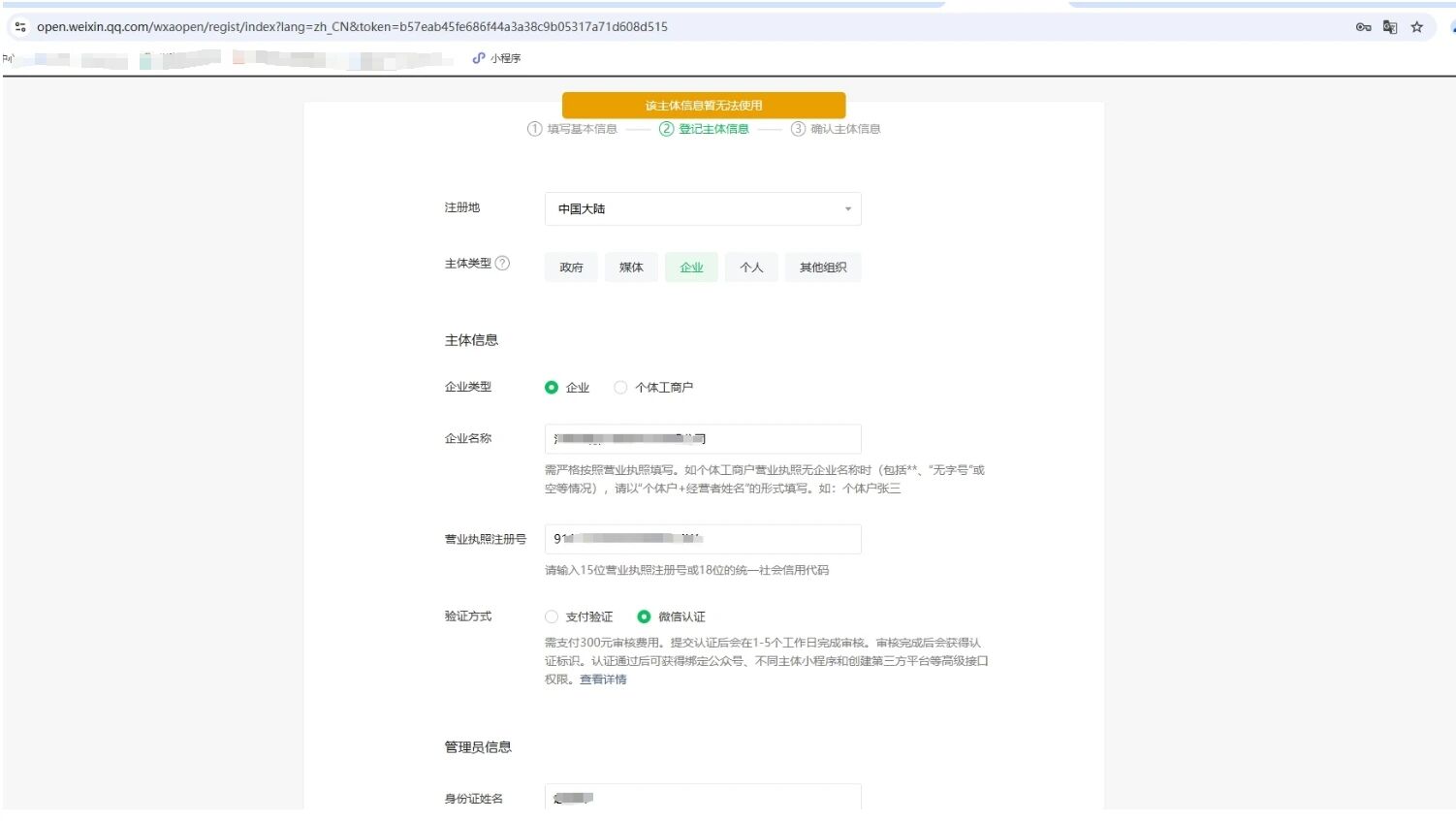 同样的问题,换了浏览器,换了资质都不行,卡在这了!