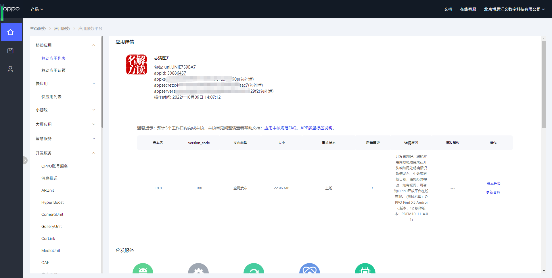 我们这边也碰到APP上架到OPPO上,然后申请微信APP支付,然后拿OPPO上的详情链接,但是拿到的详情信息没有开发者信息导致审核过不了