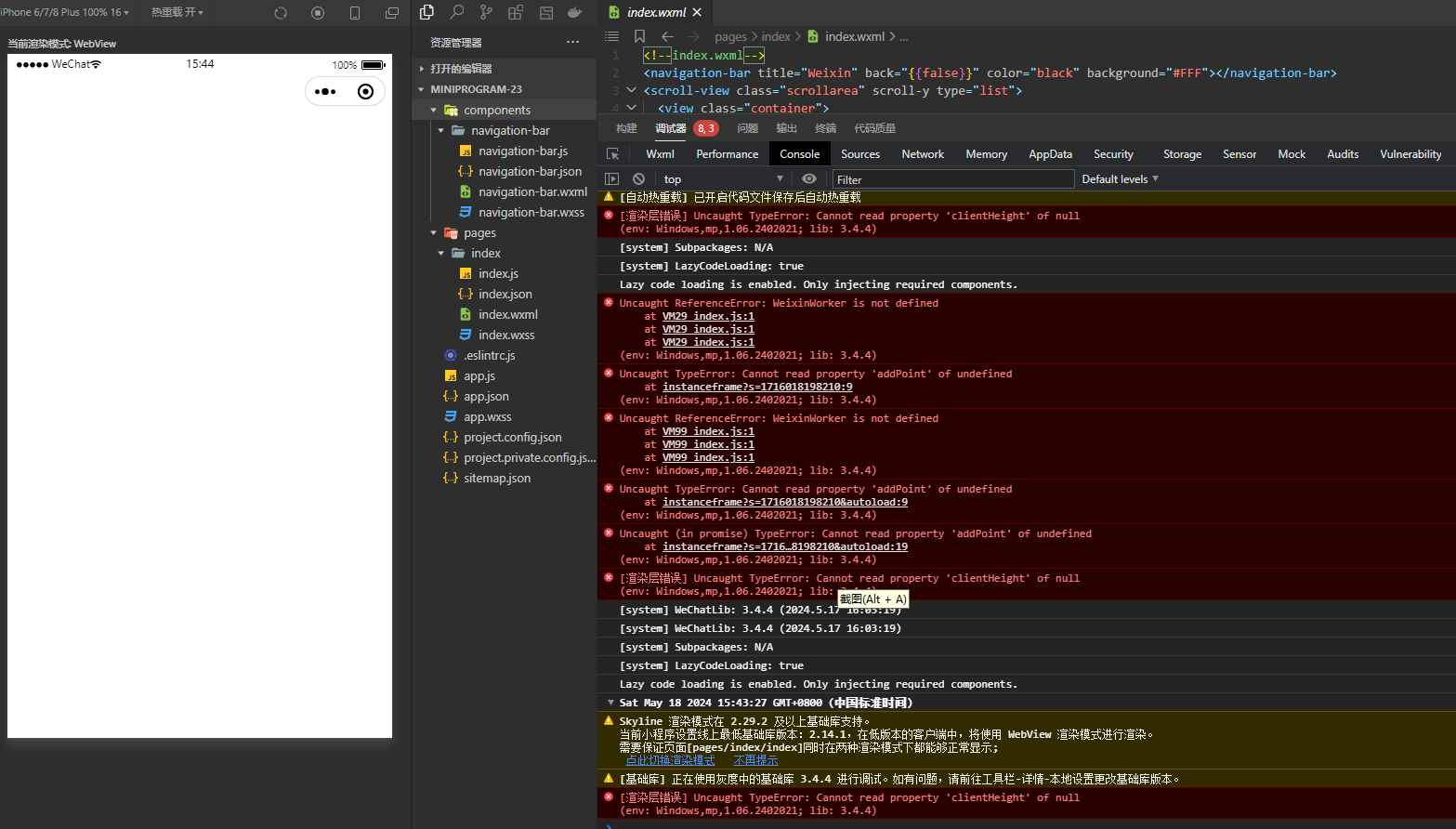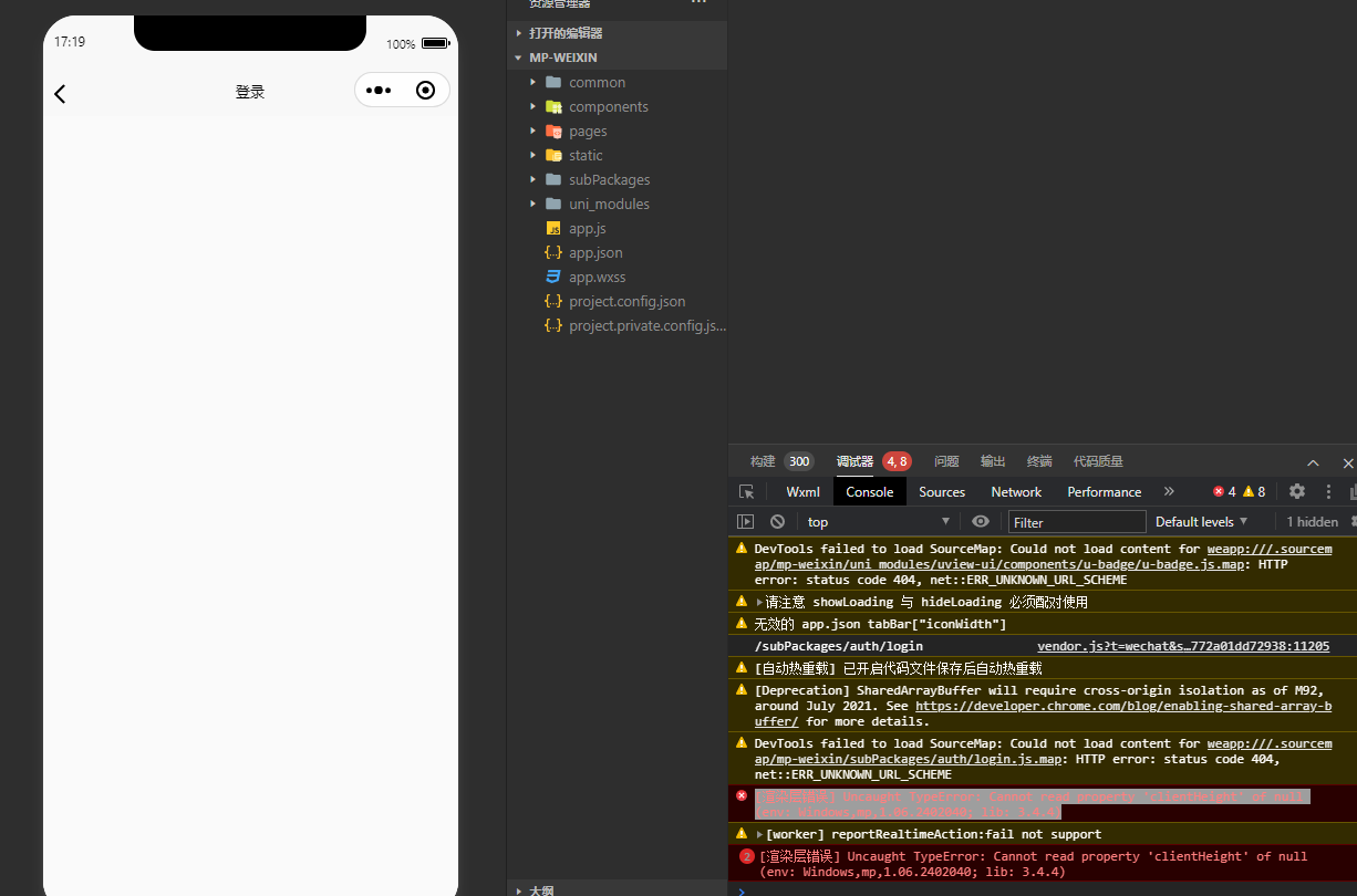 6.我回退过版本、修改过基础库(有的低版本不提示...'clientHeight'...错误,但真机调试依然卡死),……也不行哦