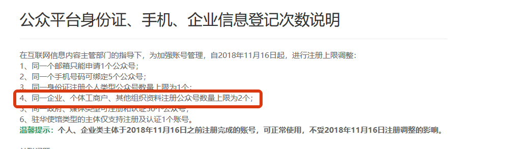 一个企业主体能注册认证几个公众号?