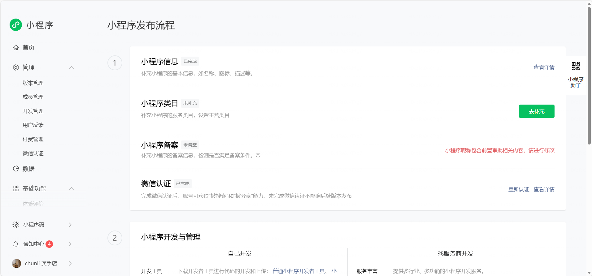 小程序昵称包含前置审批相关内容,请进行修改,但是未找到修改小程序昵称的位置
