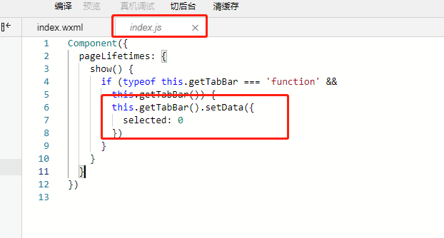 就是说,你要使用this.getTabBar获取当前组件的示例,然后设置当前的下标。