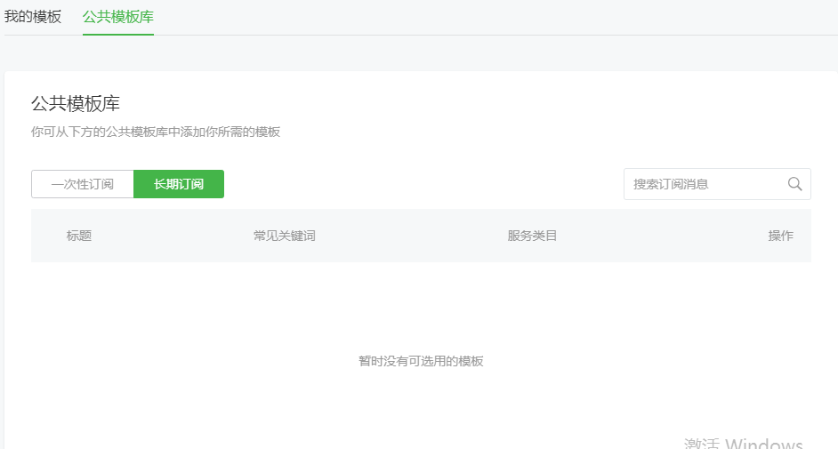 公共模板库的长期订阅没有选用模板,且没有申请入口