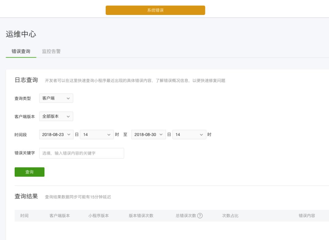 点击绿色的查询按钮后,无法显示结果,并提示系统错误