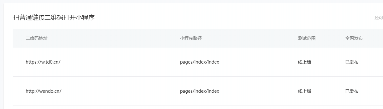 下图是小程序内配置的网址规则,扫普通链接二维码打开小程序: