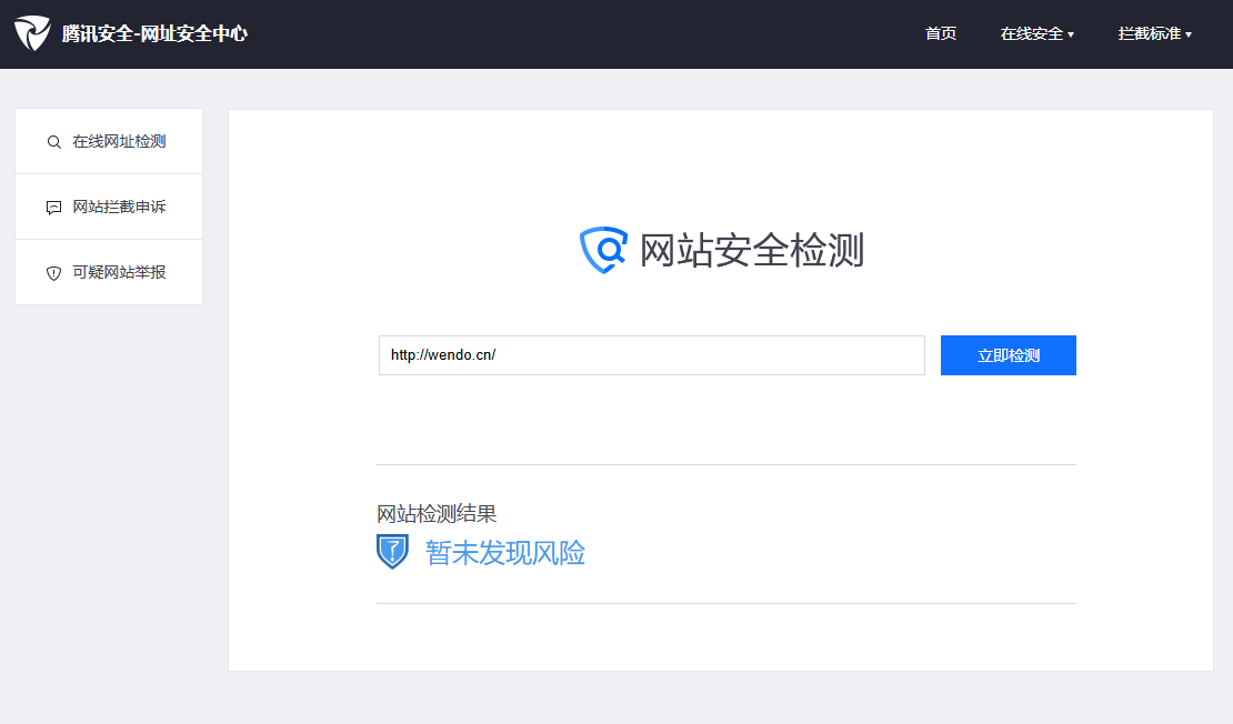 下图可证明在腾讯网址安全中心检测无风险: