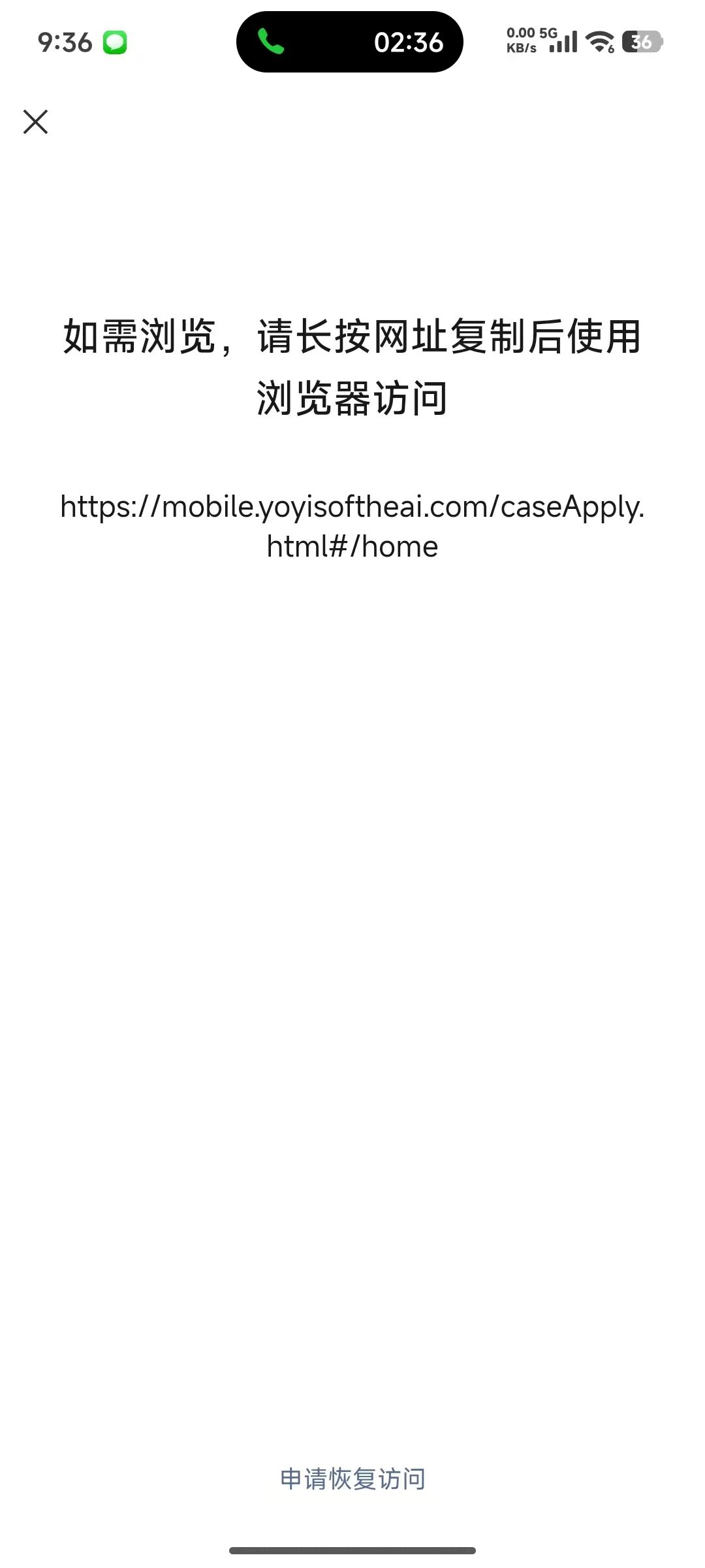 我司域名地址https://mobile.yoyisoftheai.com,突然无法在微信公众号及浏览器中正常跳转,提示需要“申请恢复访问”,但是没有提示明确禁用原因。目前已按步骤申请恢复,但是本次禁用极大程度影响了业务的使用,请麻烦尽快核实及处理。