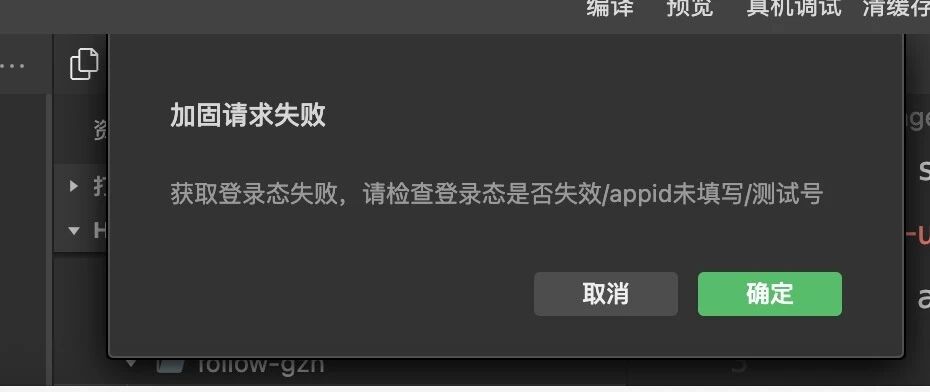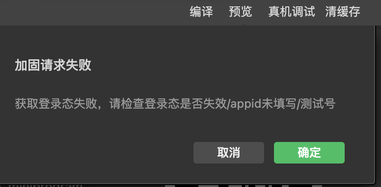 获取登陆态失败,请检查登陆态是否失效/appid未填写/测试号