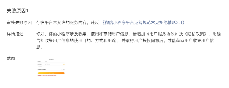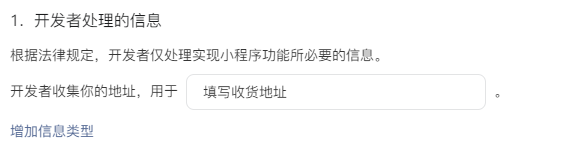 小程序中需要用户填写收货地址,隐秘保护指引也添加了。每次都不让过审