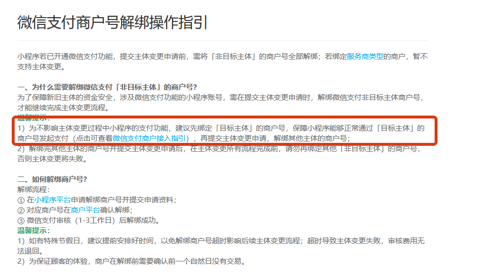 现有小程序需要进行主体变更,由于小程序目前是在运营状态,变更过程中小程序用户无法进行交易,所以想咨询变更需要多长时间,如果时间太长可能导致业务停滞。
