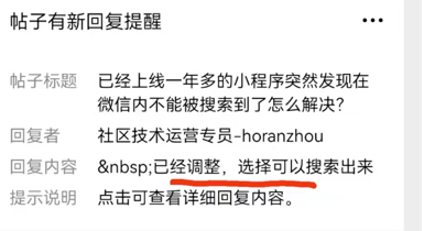 我们的小程序上线都一年多了,最近发现无法在微信内被搜索到了?