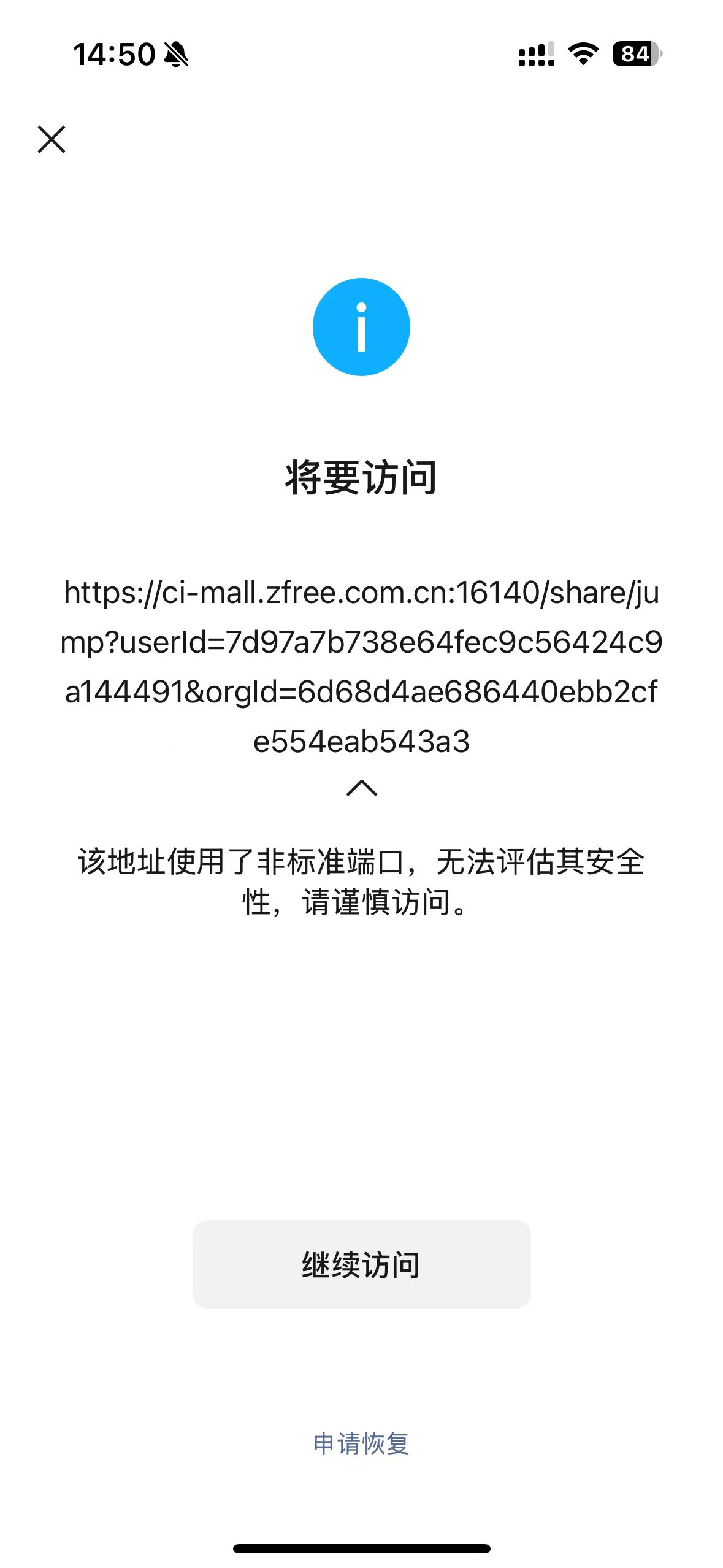域名带了端口号,配置扫描二维码跳转小程序,但不生效,显示下面页面