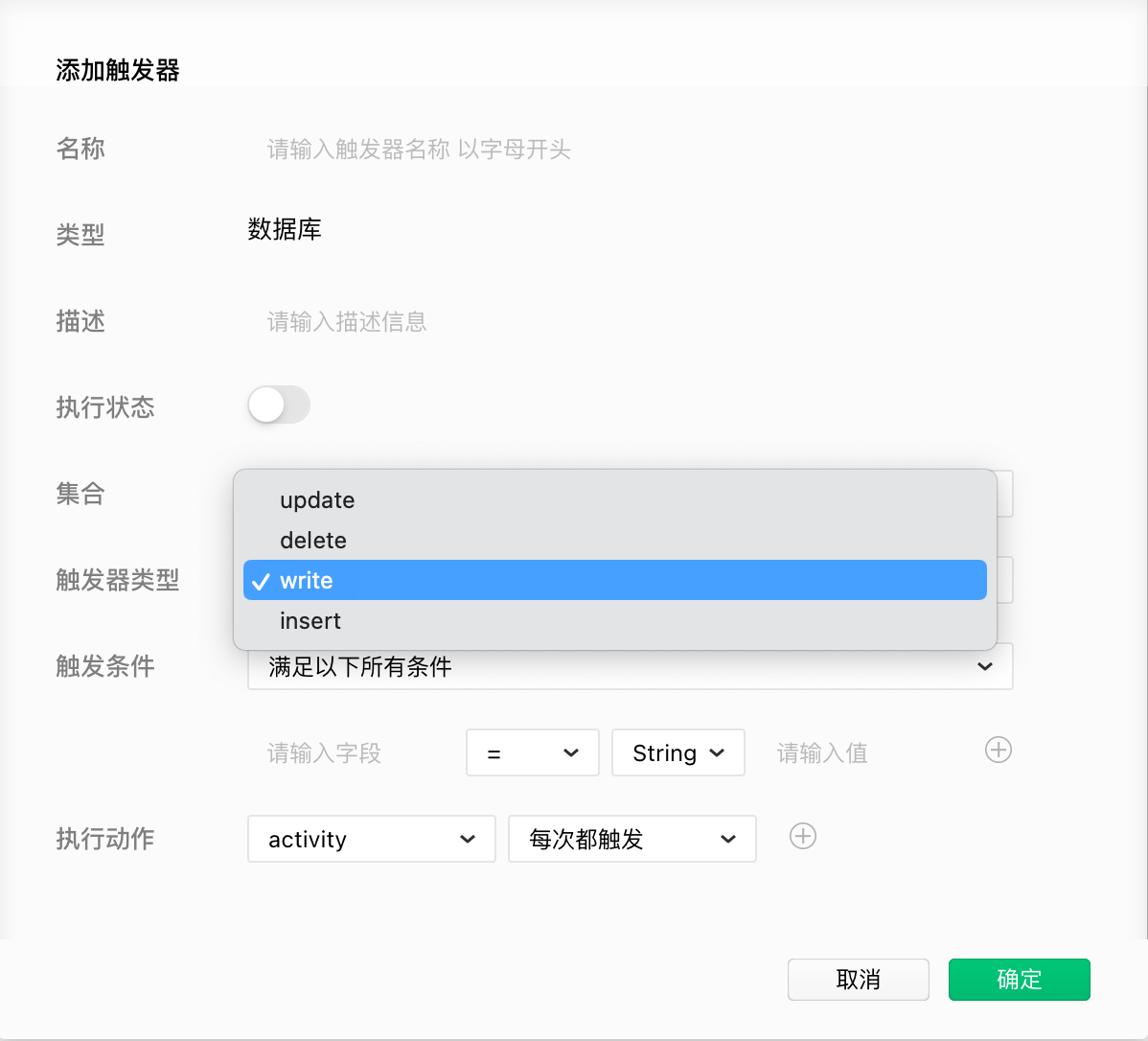 1、触发条件那个地方,希望能支持数据库表中2个字段进行比较,目前仅支持1个字段跟1个自定义值进行比较