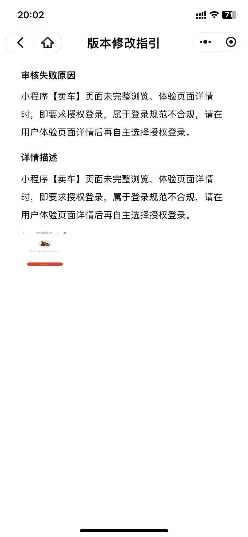 我们小程序首页有一个卖车功能,必须用户登录之后根据用户的身份判断是否已经开设店铺,进而进入相应的界面。但是发版审核的时候提示不合规范