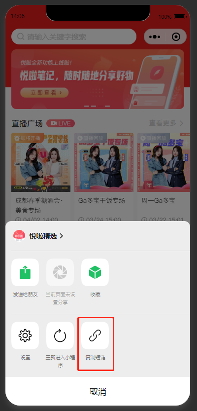 要如何才可以把点击右上角后弹出的操作弹窗中的复制链接/复制短链功能给屏蔽掉或者禁用?