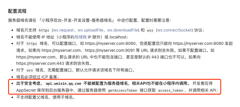 api.weixin.qq.com 是服务端API,不能在小程序内调用。
