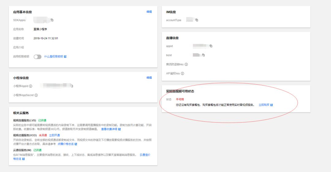 根据官方实时音视频布置的小程序后台https://github.com/TencentVideoCloudMLVBDev/webrtc_server_java 但是最后测试是不是因为这个没有开通?