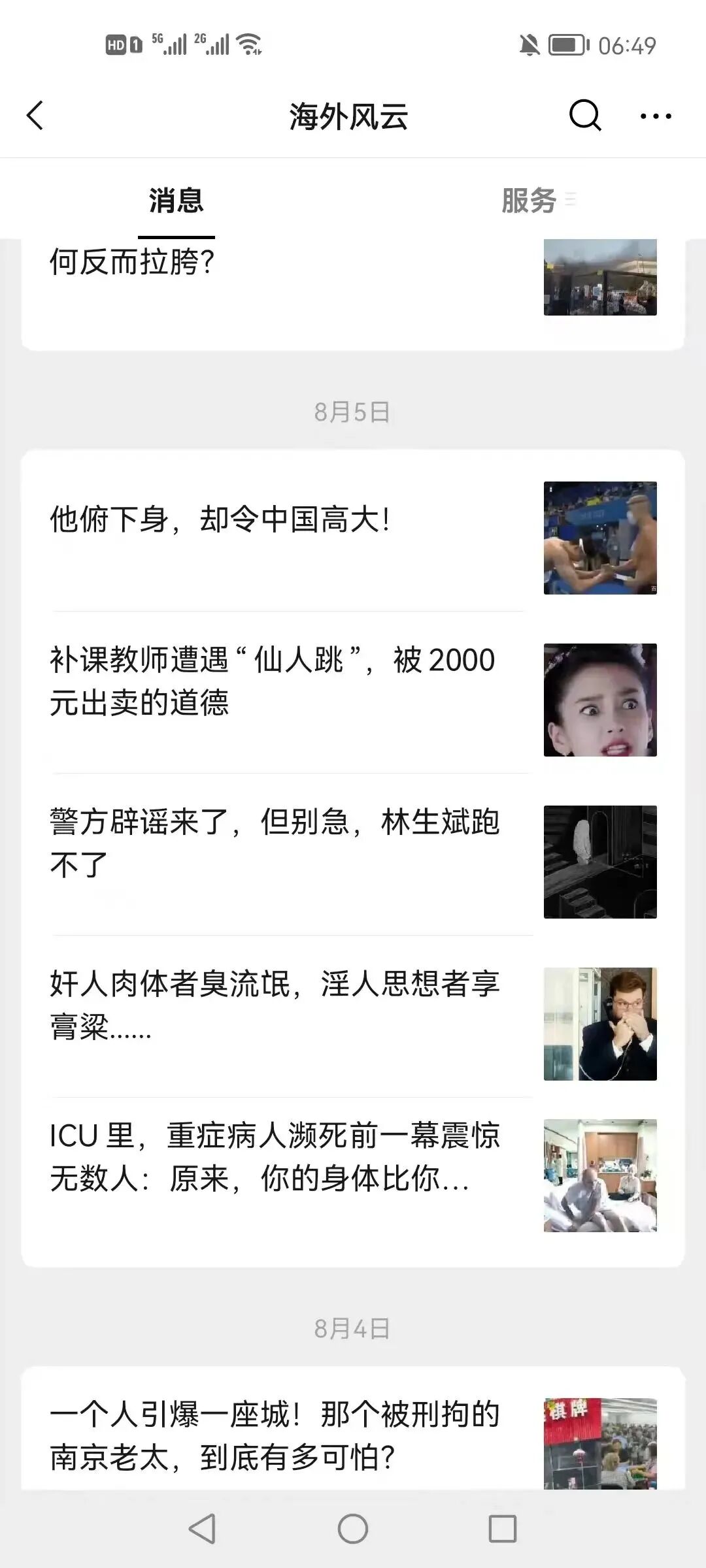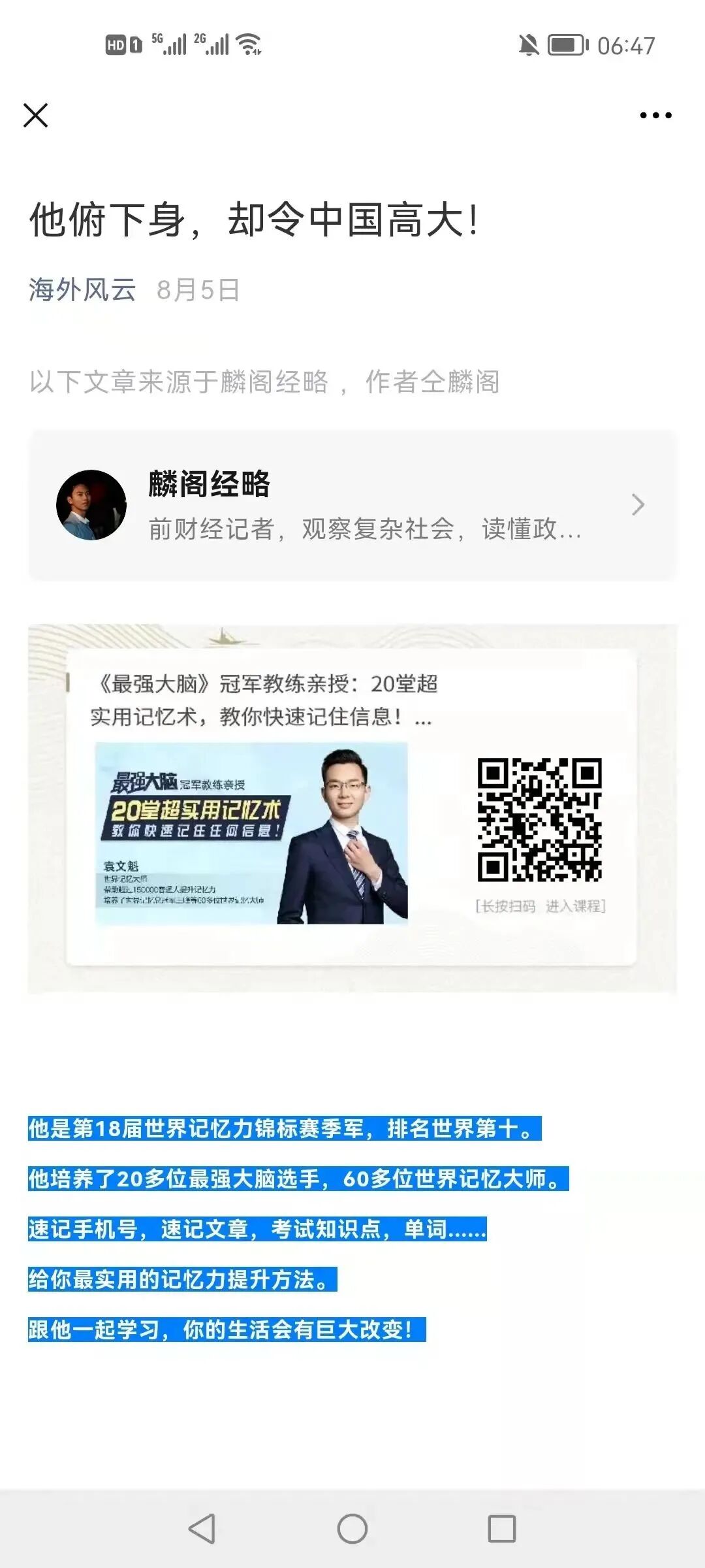 如海外风云公号2021年8月5日推送的一篇文章:《他俯下身,却令中国高大!》,就搜索不到。
