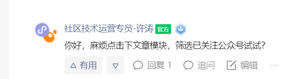 你好,麻烦点击下文章模块,筛选已关注公众号试试?