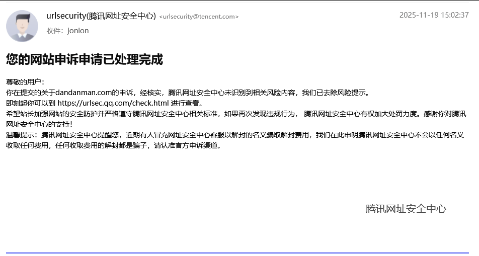 注意:因该域名【dandanman.com】下的多条链接的内容存在违反《微信外部链接内容管理规范》的第19条“恶意违规类内容”,微信需对其进行3-5天考察,暂不恢复微信内直接访问的服务,考察期满若内容合规,则将恢复提供微信内直接访问的服务,否则将不予恢复,请知悉。