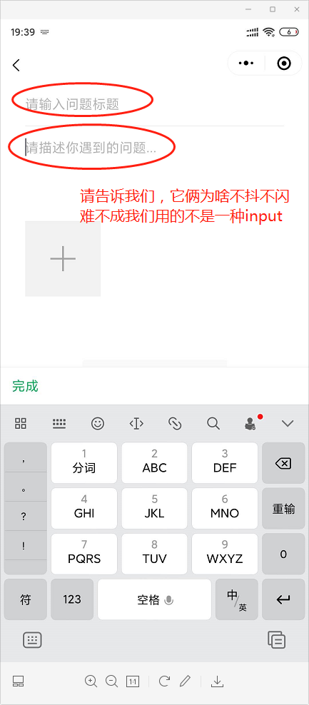 “问题这么长时间了不出修复,客服到底上报了吗?本身对功能是无影响,但是对于较真的程序来说,这一闪感觉是挺恶心的。问题根节应该是出在input:focus上,应用的字体都变了,不知道咋想的,难不成整个input被重写了?开发工具上显示的input的字体是:font-family:UICTFontTextStyleBody;,但是focus时你变个啥啊??而且发现一个不闪动的小程序,是你们微信开放社区的官方小程序,不知道你们怎么做到的?即使不修复也可以把你们的解决方法给发出来,让我们跟着也学学。”
