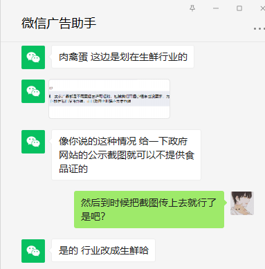 我们是卖山林放养土鸡蛋的,小程序、公众号都开通且正常在使用,想开通广告主做点推广,但在提交审核时要求提供食品经营许可证,之后我去本地政府部门咨询,被告知,农产品无需食品经营许可证,不给我办理,之后,通过公众号微信广告助手申请人工服务咨询,被告知提供政府部门关于此规定描述的截图作为经营许可证上传即可