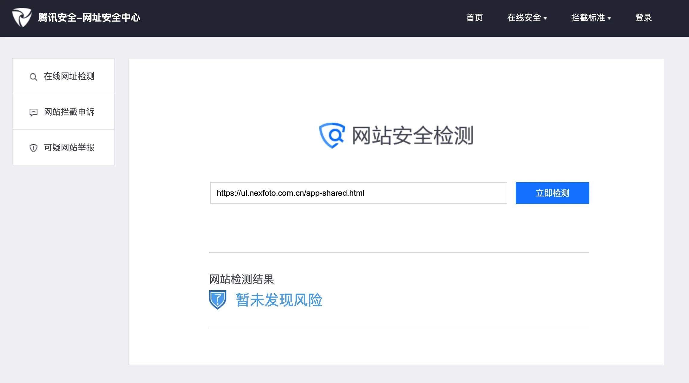 该网站域名已完成备案,有 SSL 证书且网页内容经腾讯安全-网址安全中心检测,暂未发现风险。帮忙解除拦截,谢谢!