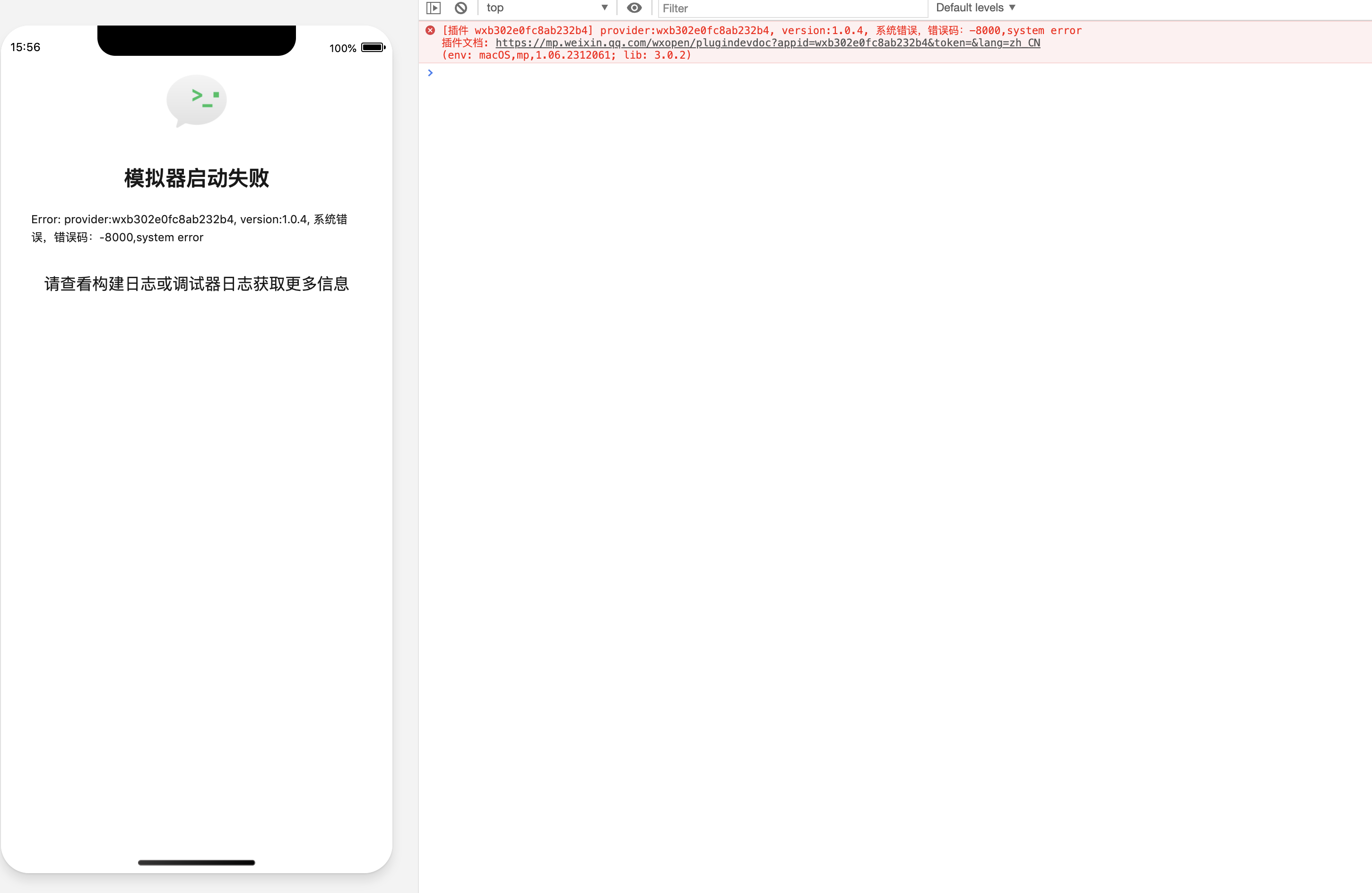 [插件 wxb302e0fc8ab232b4] provider:wxb302e0fc8ab232b4, version:1.0.4, 系统错误,错误码:-8000,system error