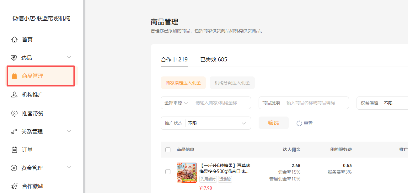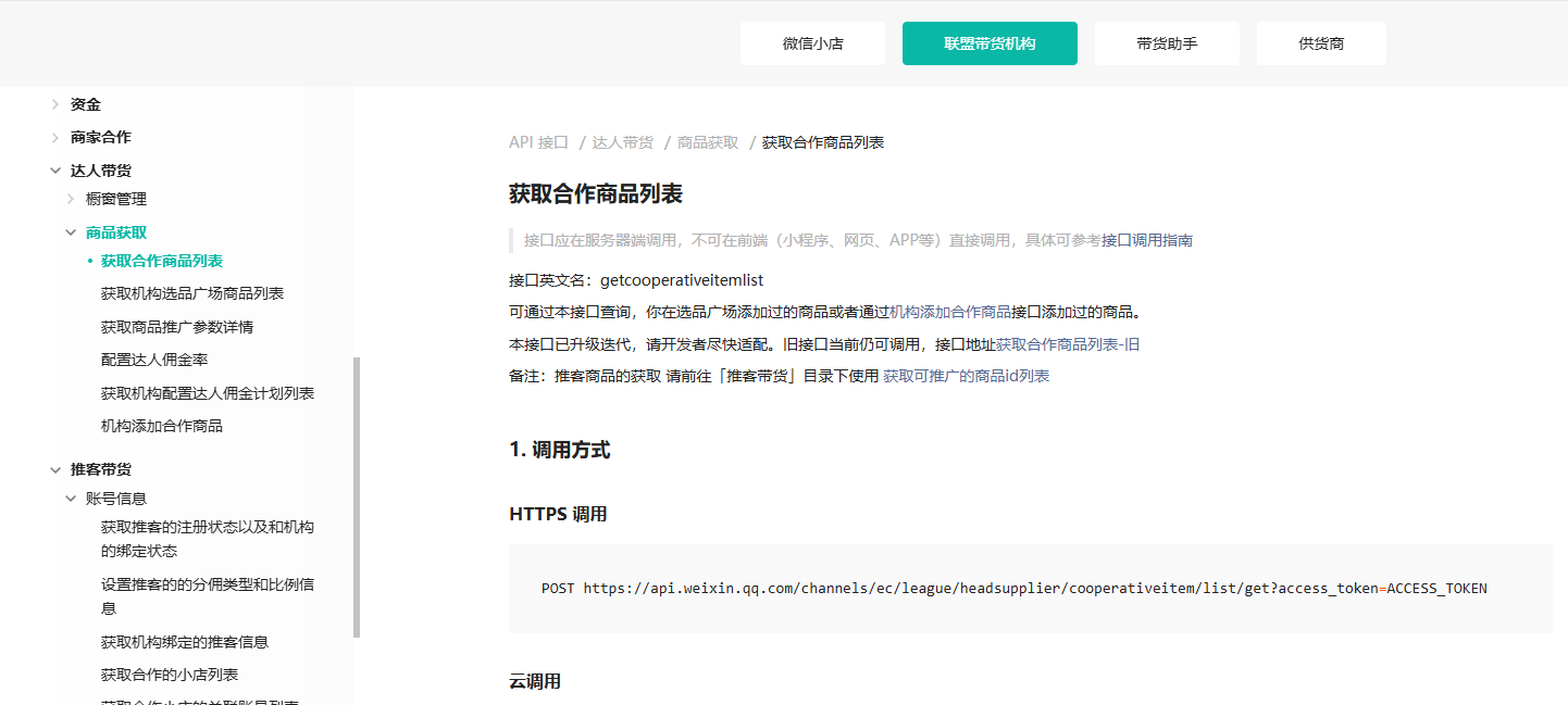 带货联盟机构中的产品管理 是不是从getcooperativeitemlist这个接口中获取