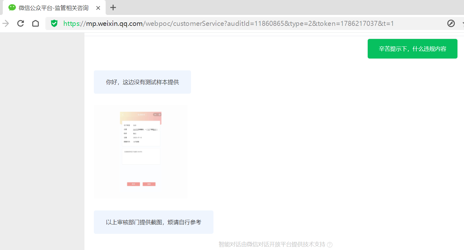综合结果通过,小程序提交审核,微信审核人员输入文本:彼时若互裸朋友,一个也不视频应声