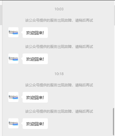 <xml><ToUserName><![CDATA[OPENID]]></ToUserName><FromUserName><![CDATA[公众号ID]]></FromUserName><CreateTime>63899662707</CreateTime><MsgType><![CDATA[text]]></MsgType><Content><![CDATA[欢迎回来!]]></Content></xml>