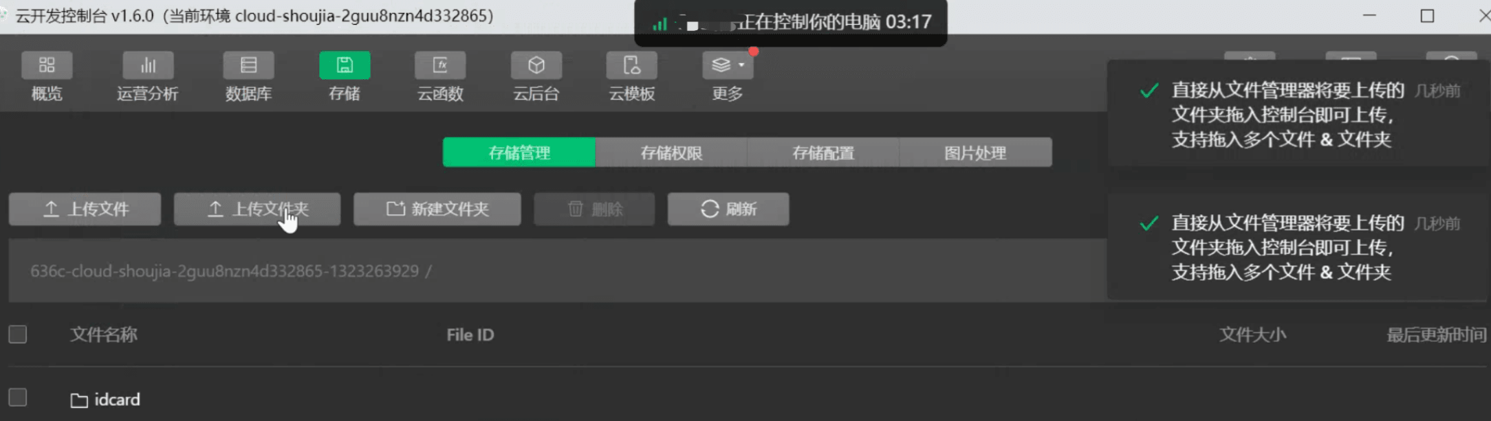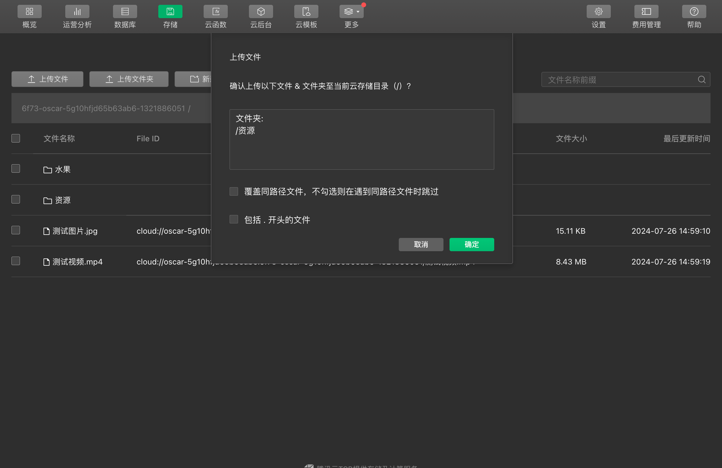 这边对云存储的测试是可以上传文件
