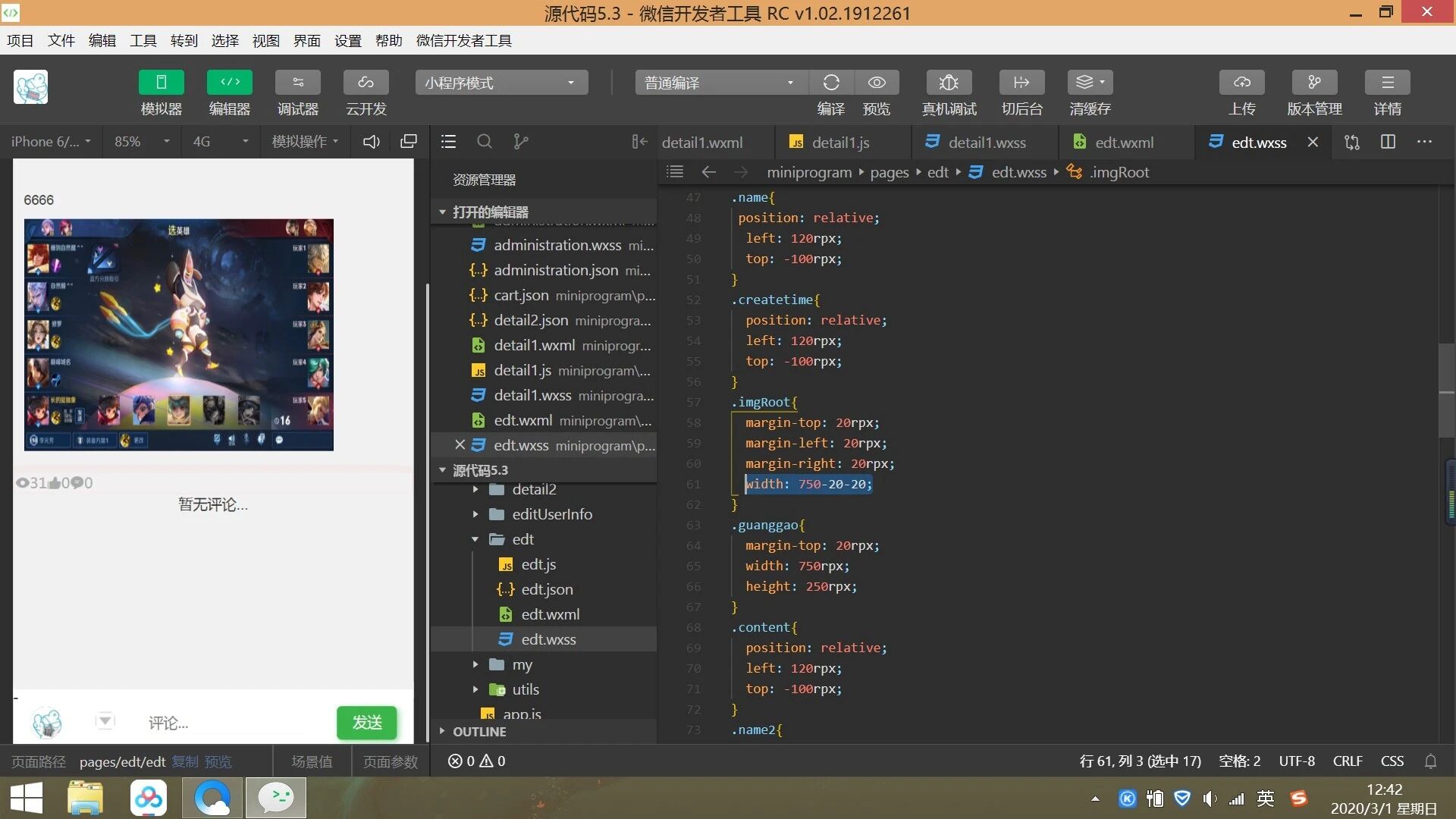 布局没写对,你写宽度为750-20-20