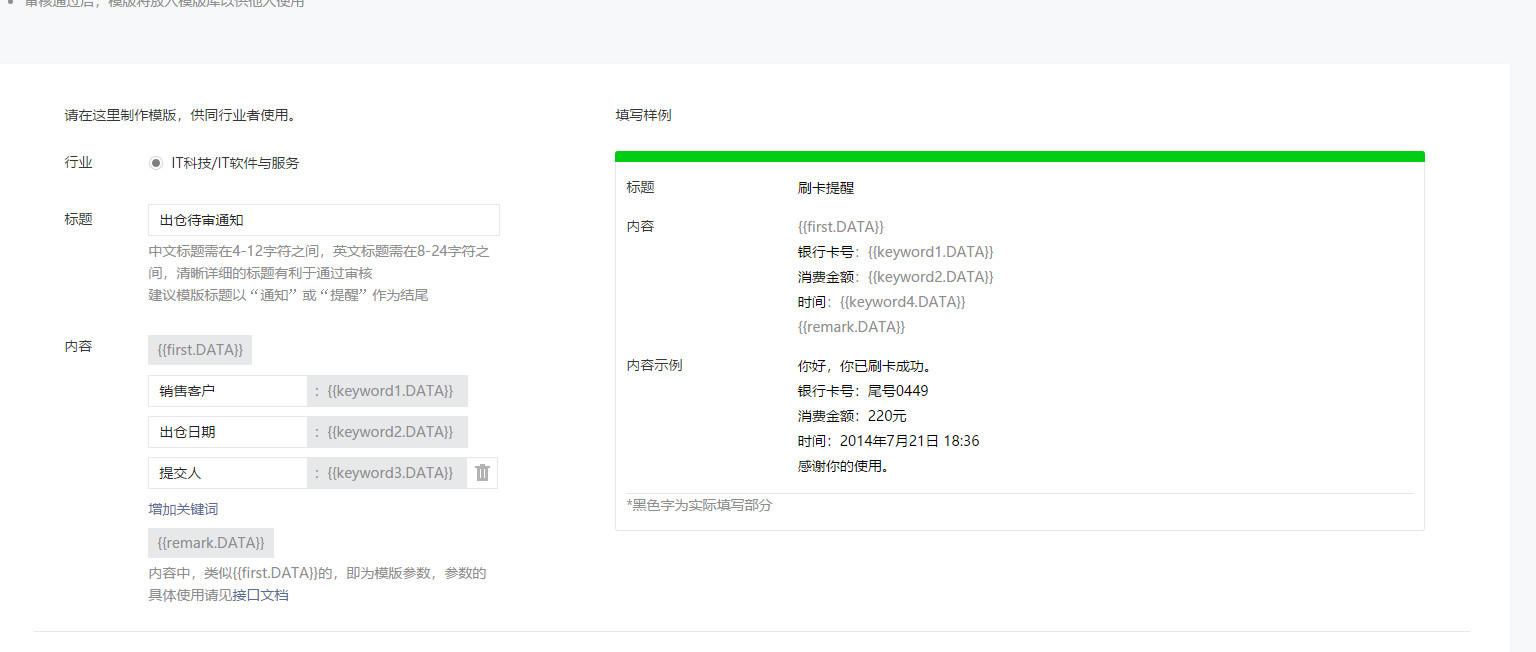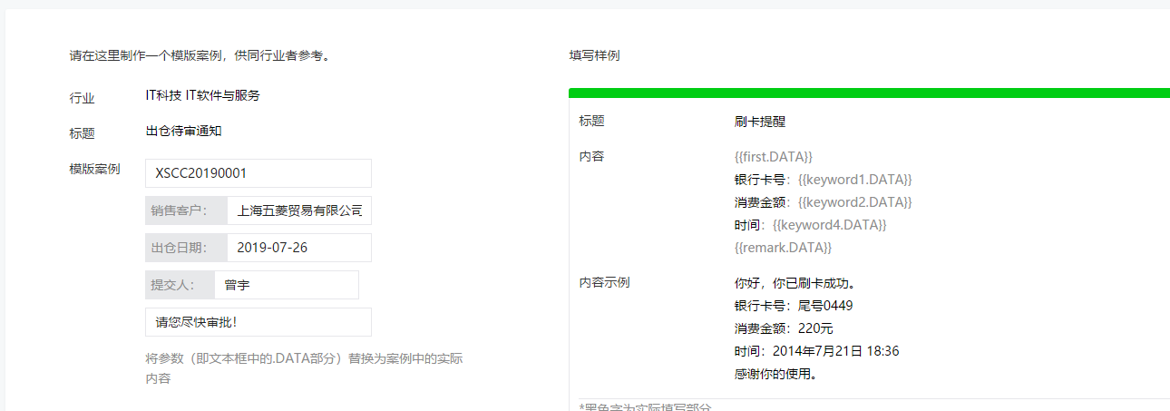 审批平台推送给用户使用的消息模板,因没有现有模板使用自行新增申请,被驳回了两次,查看了发布的规定看不出哪里不符合的
