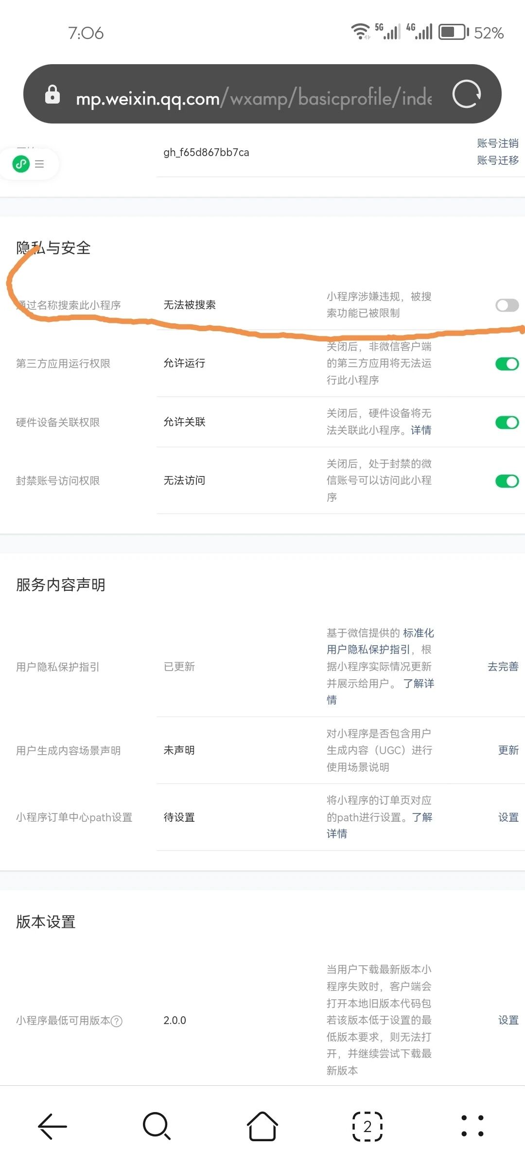 你好,若小程序搜索不到,建议先在MP后台自查以下信息: