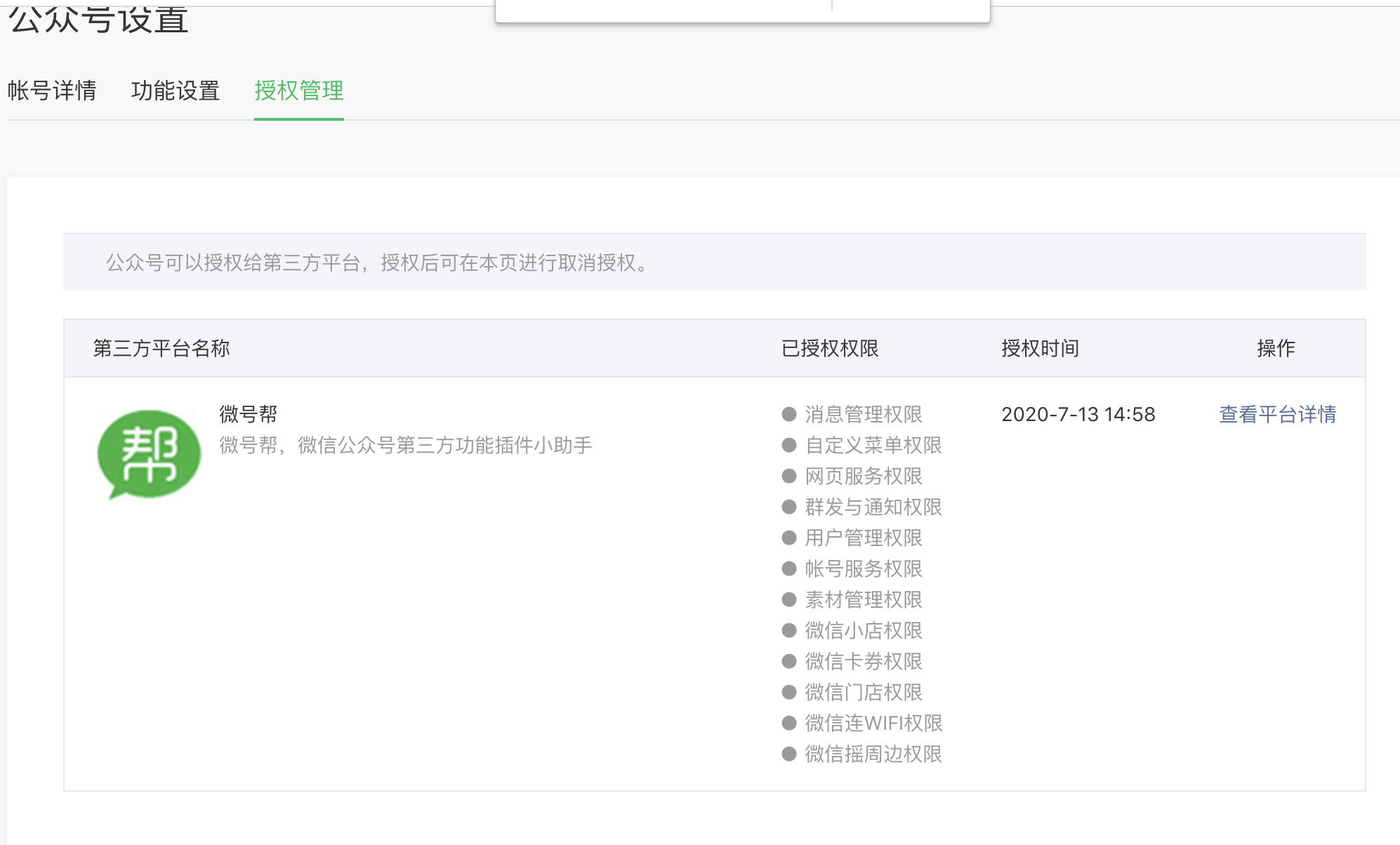 你好,这里授权第三方的消息管理权限尝试取消。你们使用的是多客服能力还是接入第三方的客服呢?