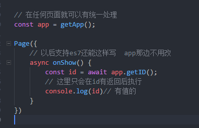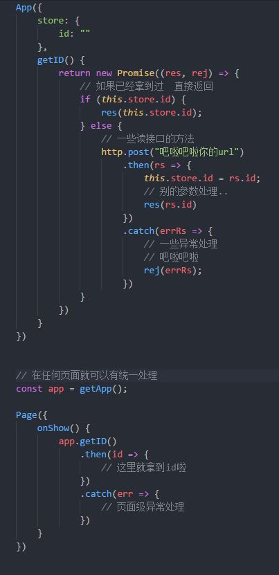 如果是统一标准 getOpenID() : Promise<Object> 那你以后每个页面都能调用这api 节省性能 解耦 以后支持es7还能直接写同步代码 async await 易于理解