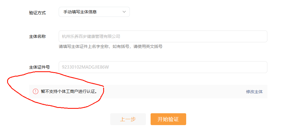 我的营业执照是自然人独资的有限责任公司,在视频号认证第一步却一直显示不支持个体工商户认证,卡着不让我进行下一步,这是怎么回事?微信意见反馈最少也反馈了两次,一直没人回复,真的会谢。打电话也永远是人机,转不到人工客服那里
