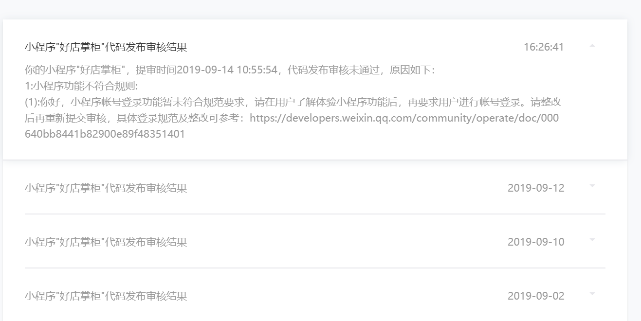 驳回也没有截图提示,只是很官方的文字,根本不知道问题出在哪里,公司另外一个小程序一样的流程2小时就审核通过了,麻烦告知具体问题出在哪里???