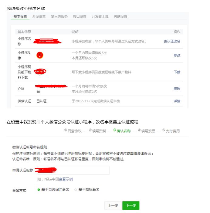 小程序发布之后,点击去认证信息,但是没有位置是修改小程序名称的