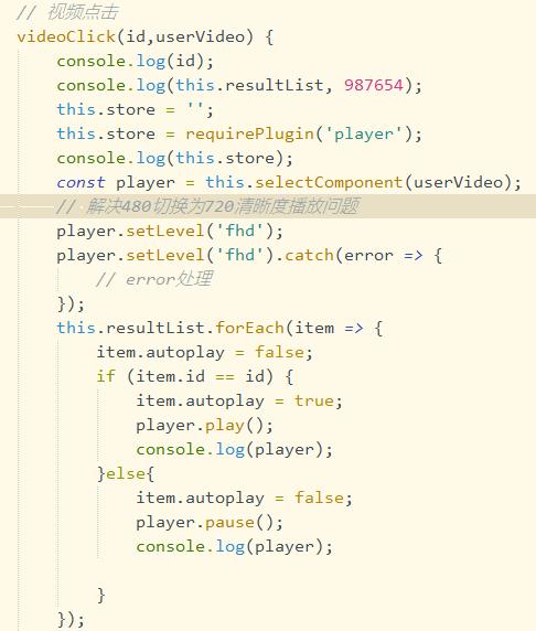 用VideoContext获取实例,控制播放。
