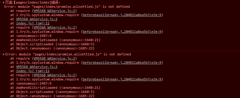 let allSettled = (funcArr) => {return new Promise((resolve) => {let sttled = 0let result = []for(let index = 0;index<funcArr.length;index++){const element = funcArr[index]element.then(res => {result[index] = {status: 'fulfilled',value: res}}).catch(err => {result[index] = {status: 'rejected',reason: err}}).finally(() => { ++sttled === funcArr.length && resolve(result) })}})}// 简单版本把代码和报错贴出来