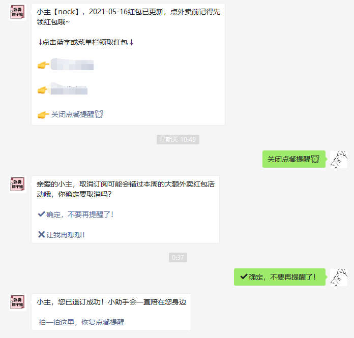 想请教大家,图中这个取消提醒和恢复提醒是如何实现的,是关键字回复实现的功能吗?是如何实现的呢?
