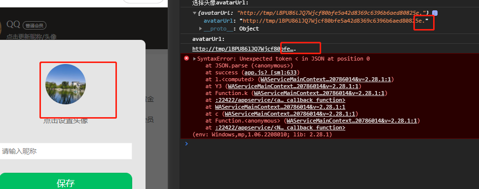 选择”用头像昵称“时,值正常,上传图片保存也都正常。