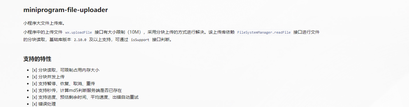 https://developers.weixin.qq.com/miniprogram/dev/extended/component-plus/uploader.html具体是不是10M的限制 没有试过,没有上传过这么大的